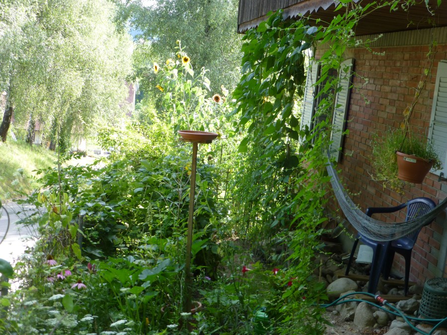 I string up the hammock in the garden.