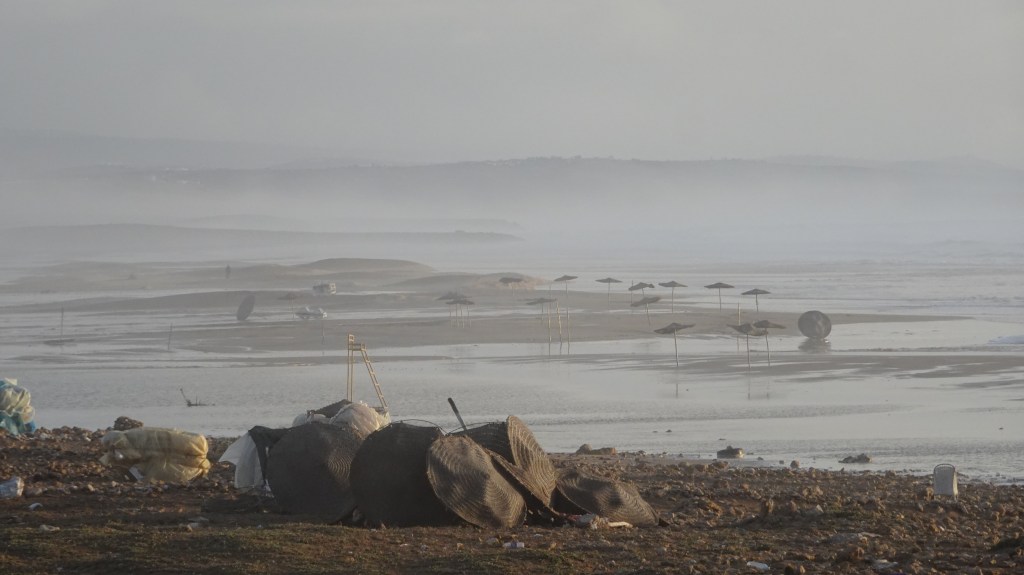The Coast form Tangier to Sidi Infi – an beyond To be honest, the entire coastal section from Tangier to the south of Agadir rather disappointed me. What immediately catches the eye is the ubiquitous pollution – especially plastic, and not only on the beaches, but really everywhere. The worst is around villages and cities, but also outside in the countryside: in fields, forests, rivers, even in dried-up streams, the garbage is lying around ankle deep. Although the government has already banned plastic bags in 2016 – the effect seems to have evaporated somewhere in the wind of the Atlantic coast. The rubbish remains. Just like the general decay: crumbling buildings, neglected corners, rusty remains. The traces of time and lack of care are hard to miss. As in many countries with weak infrastructure, the gap between rich and poor is extremely wide. This is especially noticeable in Rabat – the modern capital with a chic center, smooth streets, international shops. As soon as you are outside the City again, it almost seems like another world. The trip along the coast had little spectacular to offer. A few nice sections of landscape, some historical buildings, some Markets in towns less frequented by tourists– that’s almost it. The beaches are wild, windswept, ideal for surfers – but less so for someone who just wants to sit on the Beach and enjoy a swim in the sea. There are some impressive cliffs around the Agadir area – pretty, but not really overwhelming .